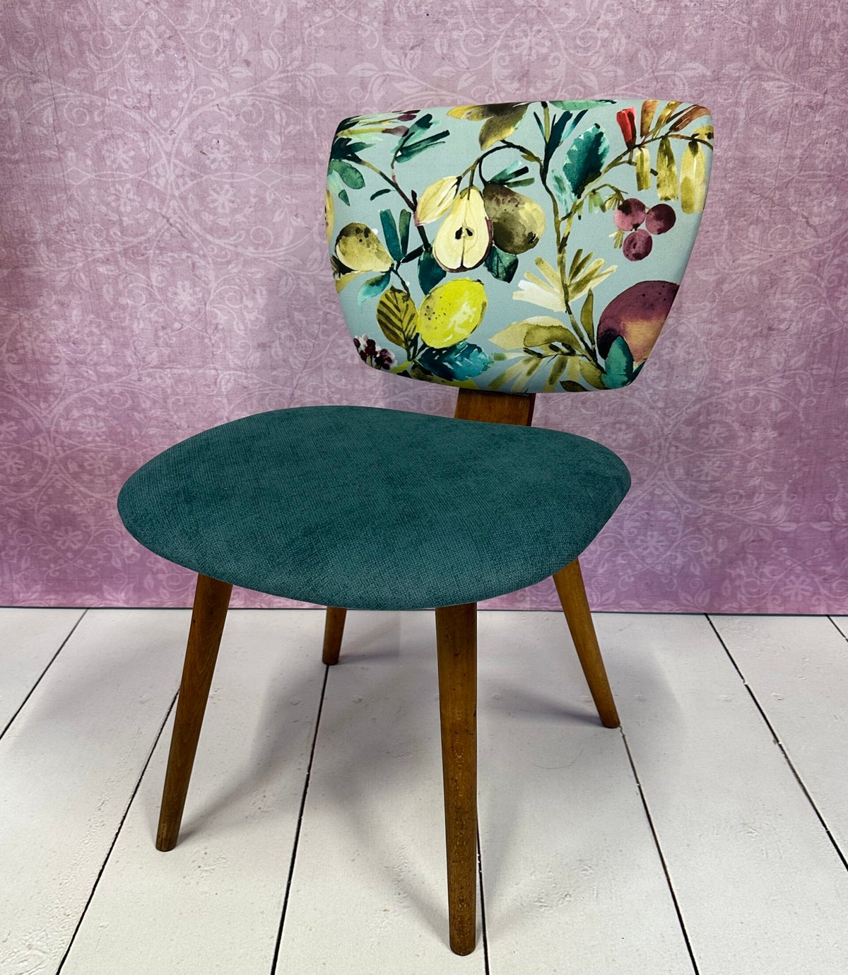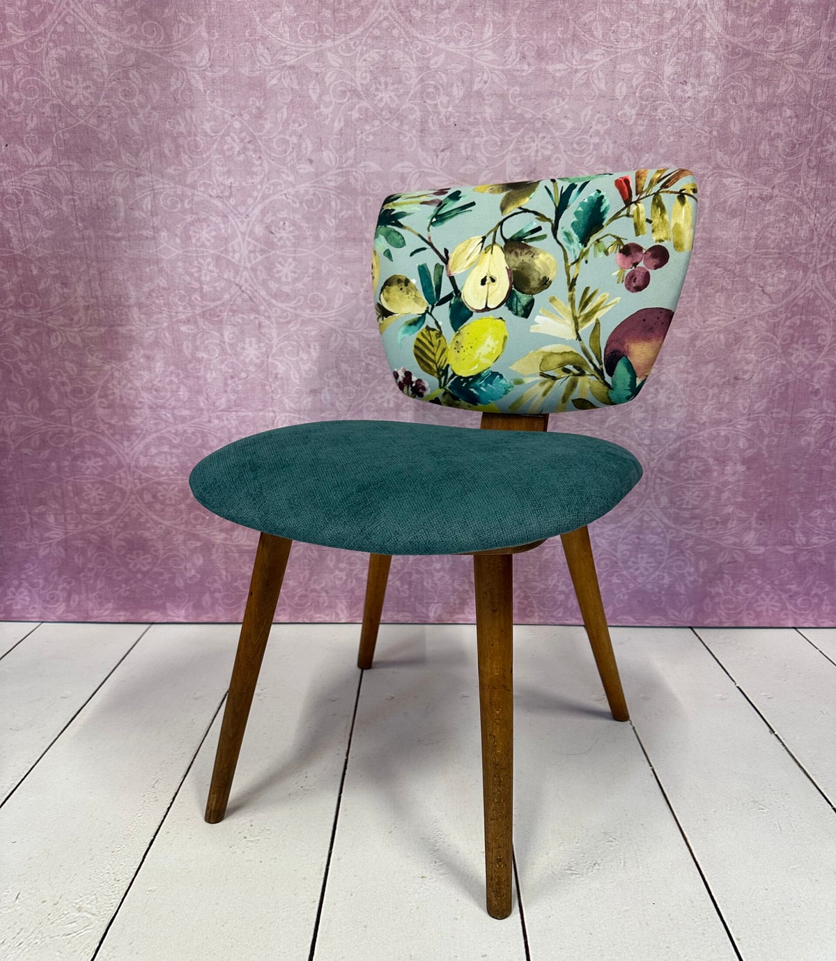 Door de vrolijke keuze van twee stoffen: een print en een effen stof, maakt het dat dit gezellige originele stoeltjes zijn geworden!